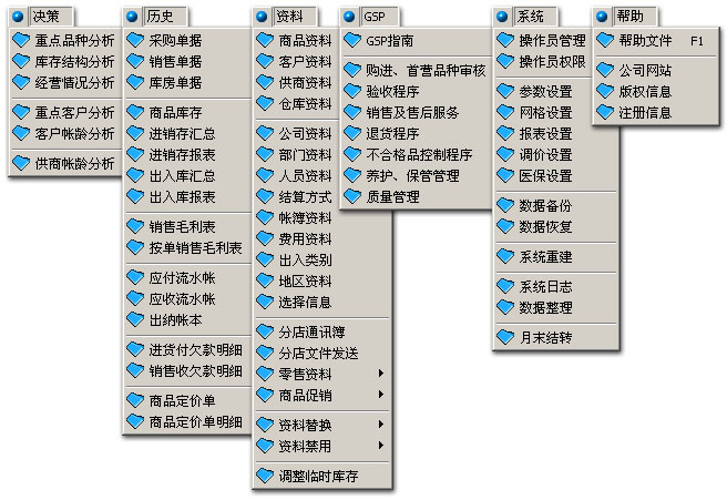 | ● 中國(guó)軟件注冊(cè)產(chǎn)品 專業(yè)品質(zhì)優(yōu)秀軟件 ● 藥品生產(chǎn)批發(fā)零售 各類企業(yè)都能適合 ● 配合GSP&GMP認(rèn)證 全面管理進(jìn)銷(xiāo)存財(cái) ● 五筆拼音條碼助記 多種輸入任意選擇 ● 對(duì)方代碼一樣可用 分類分級(jí)個(gè)別定價(jià) ● 徹底解決批次效期 先進(jìn)先出方便直觀 ● 生產(chǎn)日期滅菌批號(hào) 貨位貨架井井有條 ● 表體設(shè)置自由搭配 貨位效期輕松調(diào)整 ● 有效失效智能提示 積壓短缺即時(shí)可得 ● 手動(dòng)自動(dòng)采購(gòu)訂單 最低最后進(jìn)價(jià)取舍 ● 先進(jìn)后出得心應(yīng)手 折扣計(jì)價(jià)方式靈活 ● 商品調(diào)價(jià)多樣選擇 整數(shù)零數(shù)自由組合 ● 統(tǒng)計(jì)查詢方便快捷 打印格式隨心所欲 ● 套打清單準(zhǔn)確無(wú)誤 資信額度隨時(shí)可調(diào) ● 賬齡分析一目了然 現(xiàn)金銀行筆筆清楚 ● 小數(shù)位數(shù)任意調(diào)整 庫(kù)存盤(pán)點(diǎn)輕松自在 ● 權(quán)限設(shè)置環(huán)環(huán)相扣 特殊賬套多樣設(shè)置 ● 開(kāi)票回款業(yè)務(wù)提成 稅局稅控?zé)o縫連接 |