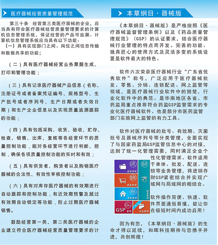 | ●專給醫(yī)療器械經(jīng)營(yíng)者用的軟件《本草綱目》 | |